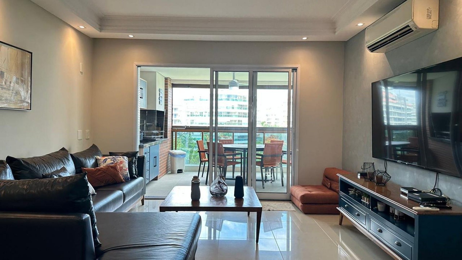 Ar-condicionado em todos os cômodos, completamente equipado.